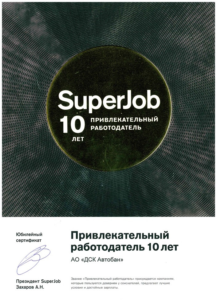 Строительно-инвестиционный холдинг «Автобан» десятый раз получила титул «Привлекательный работодатель» по итогам 2020 года по версии портала Super Job. Почетного звания компания удостаивается ежегодно, начиная с 2011 года.