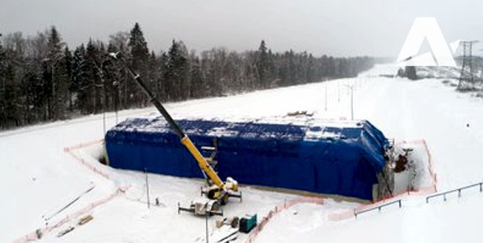 Размеры экодука в Дмитровском районе впечатляют: 51 метр в длину и 21 метр в ширину. На зиму, как положено, экодук укрыли брезентом, чтобы защитить от ветра, дождей и снега.