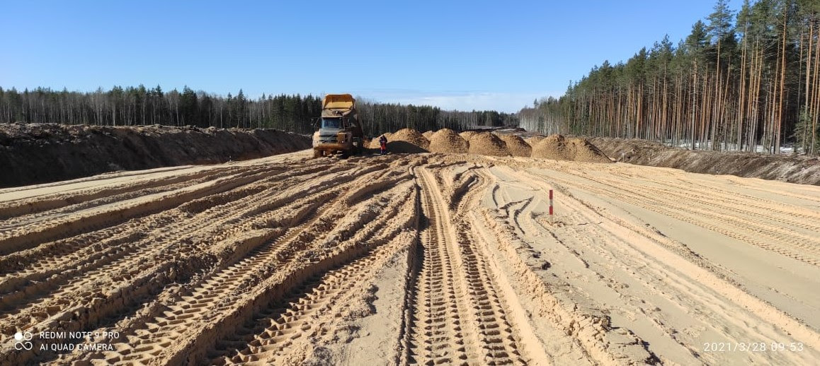Журналисты издания Горбатка.ру запустили дрон, чтобы запечатлеть с высоты птичьего полета первые километры асфальта на полотне будущей трассы М-12 «Москва — Казань», которые уложили возле деревни Мичково Селивановского района.