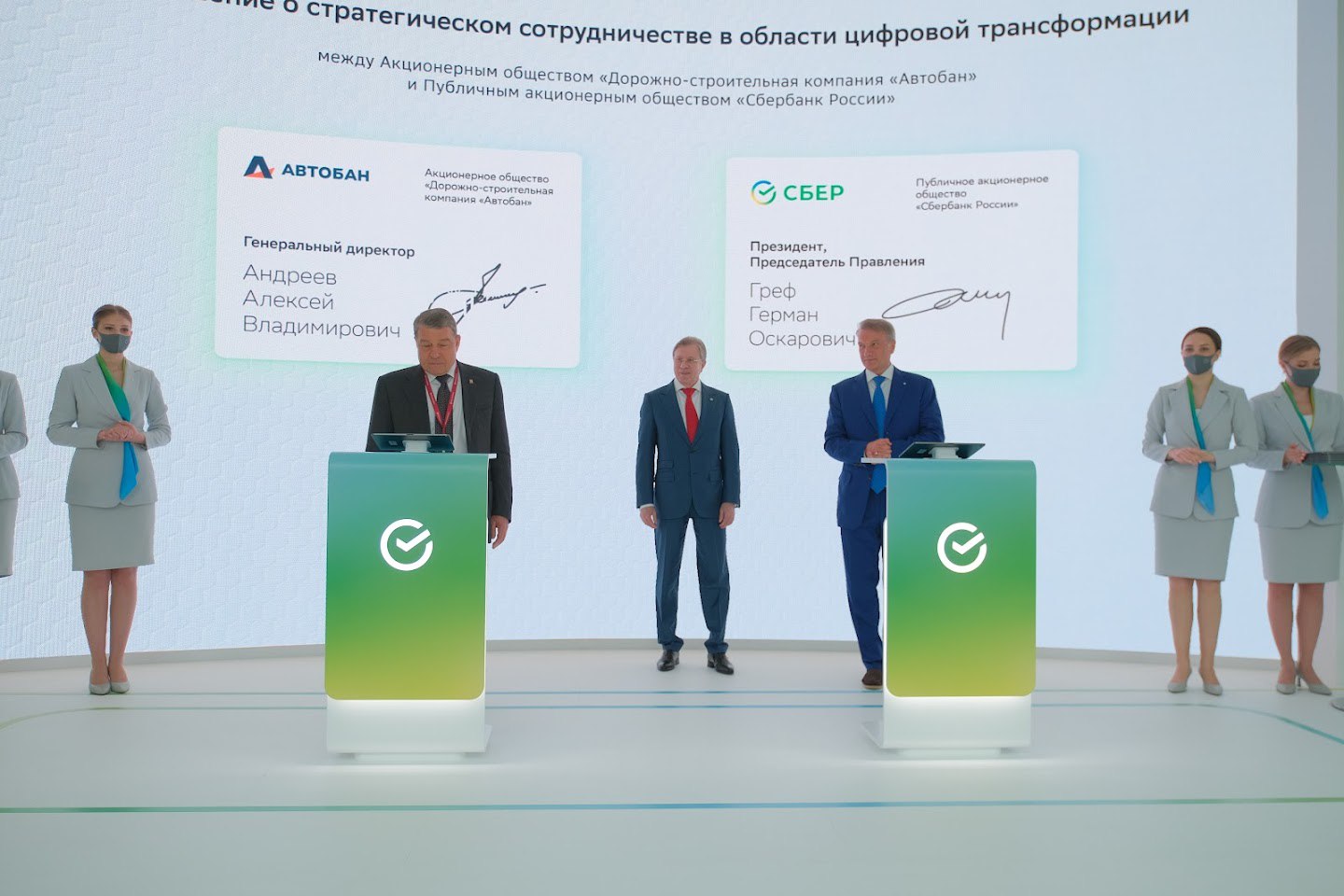 На Петербургском международном экономическом форуме Сбер и Дорожно-строительная компания «Автобан» подписали соглашение о стратегическом сотрудничестве. Подписи под документом поставили Президент, Председатель Правления Сбербанка Герман Греф и генеральный директор АО «ДСК “Автобан”» Алексей Андреев.
