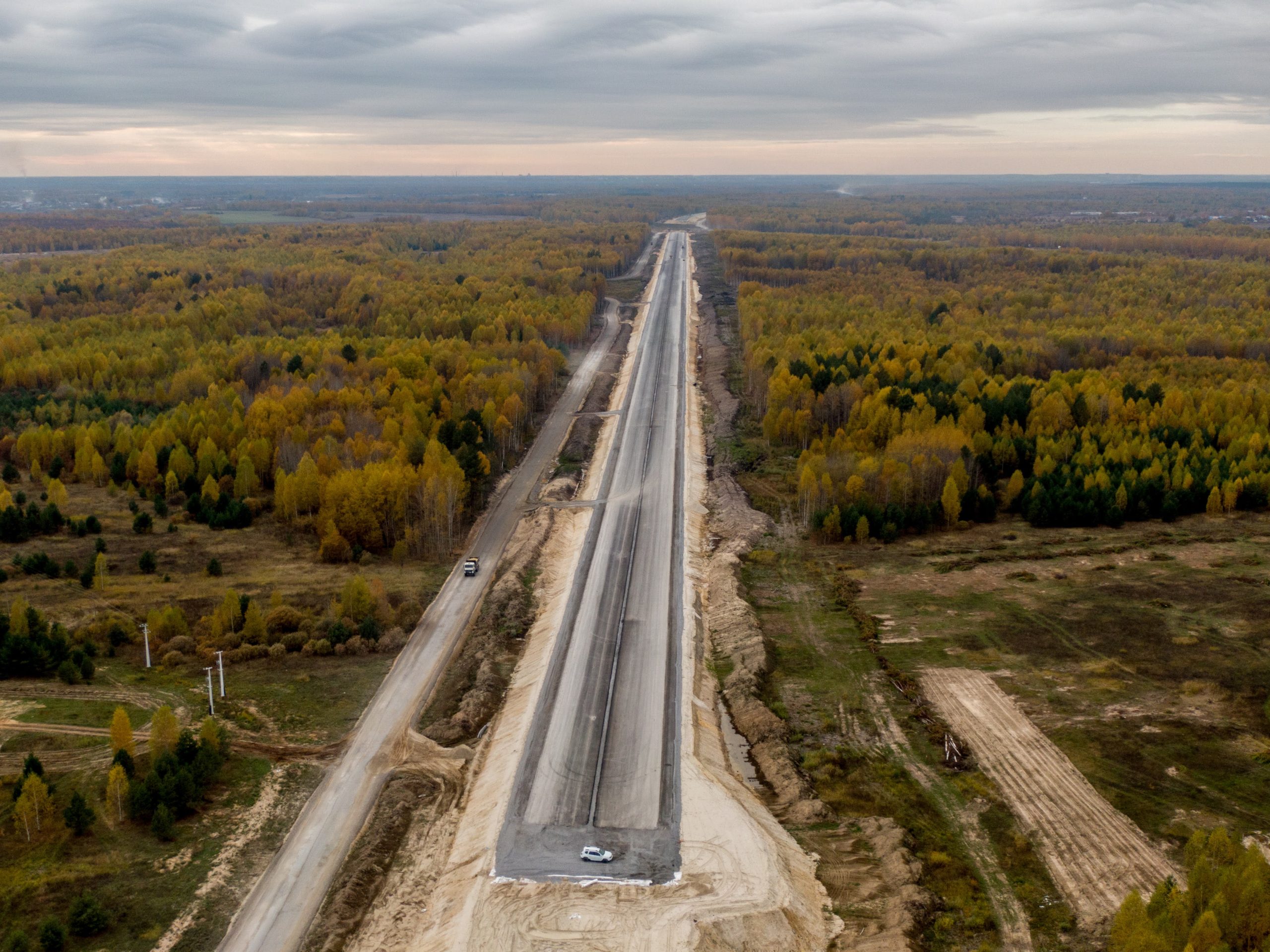 Сейчас дорожники устраивают железобетонные плиты противокарстового армирования, укрепляют откосы насыпи гибкими матами, укрепляют полосы отвода и откосов растительным грунтом с гидропосевом и укладывают слои дорожной одежды. Уже готово 85 км верхнего слоя основания, 75 км нижнего слоя покрытия и 25 км щебеночно-мастичного асфальтобетона.