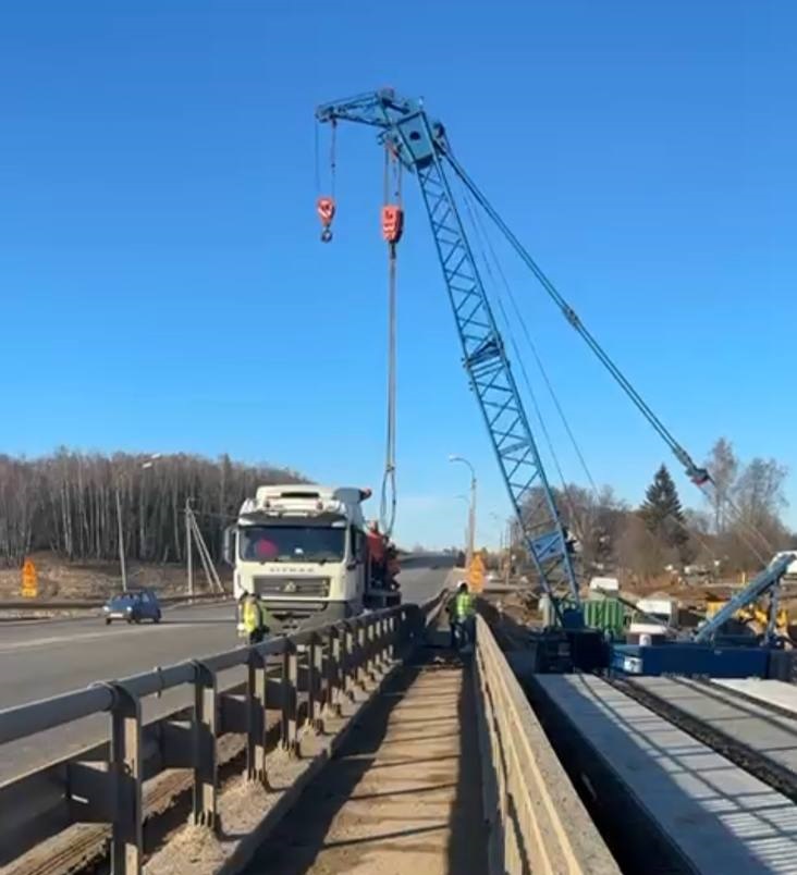 На данный момент успешно завершен монтаж первого пролета, состоящего из 14 балок длиной 11,9 метров, а также второго пролета, в который вошли 14 балок длиной 28 метров. Кроме того, специалисты провели входной контроль 15-метровых балок, которые в настоящий момент устанавливают на третьем пролете. Все балки изготовлены на собственном производстве компании «Автобан-Мост».
