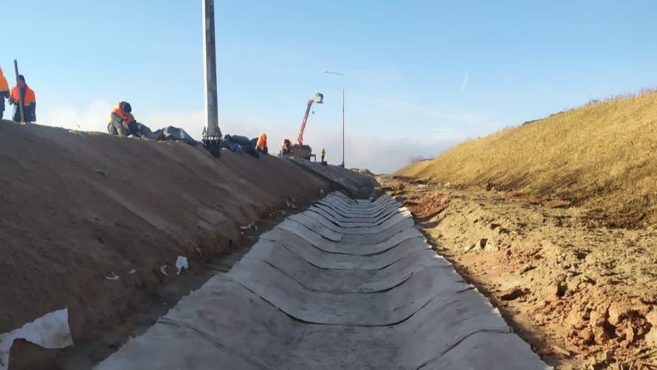 Для устройства кюветов на 5 и 6 этапах строительства трассы М-12 «Восток» в строительном сезоне 2023 года специалисты СУ-920 использовали необычный материал — иннобетон. Это гибкое полотно, которое подстраивается под изменения рельефа и может быть нанесено на любую поверхность.