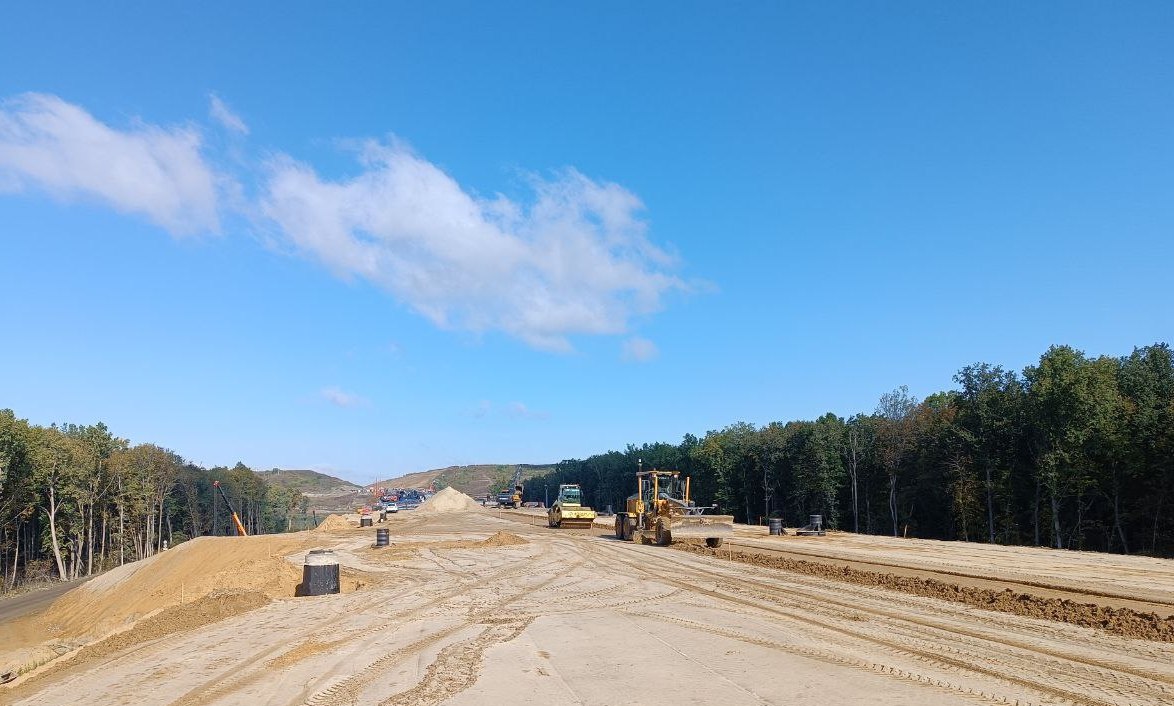Помимо этого, производится устройство водосбросов и ливневой канализации для отвода воды с проезжей части, засыпка и послойное уплотнение котлованов под локальные очистные сооружения (ЛОСы, 7 шт.), установка сетчатого ограждения в полосе отвода, вдоль строящейся дороги и монтаж инженерных коммуникаций – сетевыми организациями.