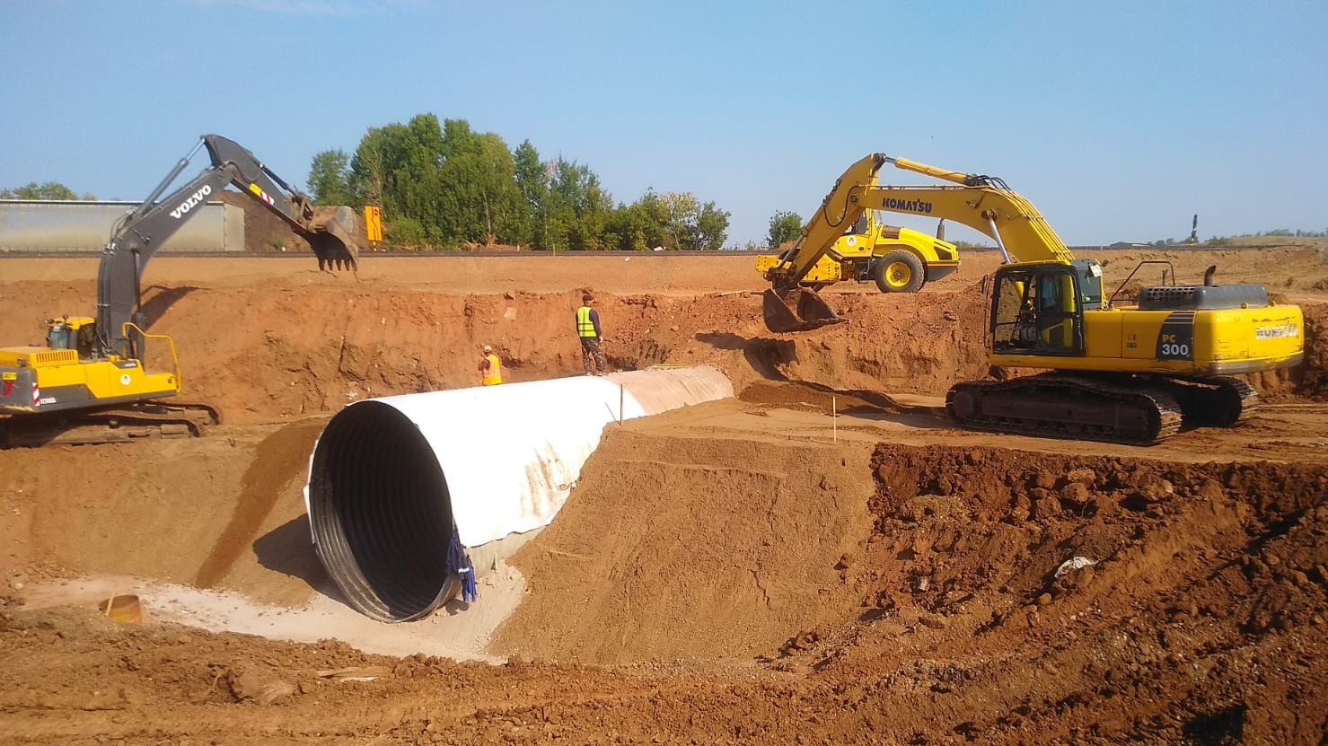 Команда СУ-967 строительно-инвестиционного холдинга “Автобан” на федеральной трассе М-5 “Урал” (км 1360+000 – км 1375+000) впервые своими силами смонтировала металлическую гофрированную водопропускную трубу диаметром 4 метра. Геологические условия оказались очень непростыми: перед подготовкой к монтажу трубы строителям пришлось заменить весь слабый грунт на бутовый камень фр. 70-150 мм. Затем дорожники подготовили подушку под трубу, смонтировали саму трубу, сделали обратную послойную засыпку и успешно сдали работы представителям строительного контроля.