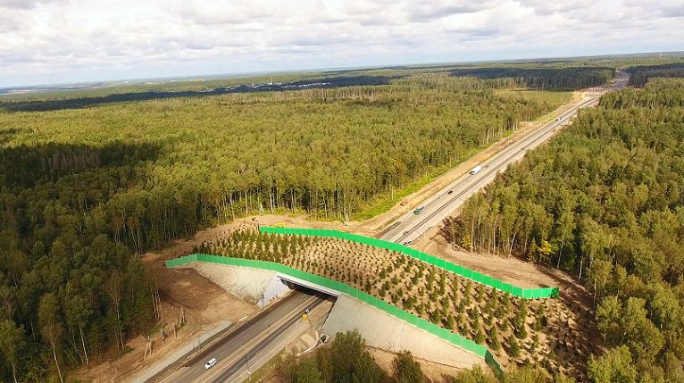 At the design stage, our specialists plot a route bypassing habitats of rare animals and specially protected areas, fish feeding and spawning grounds. When designing, the minimum constriction of river channels and change in the natural landscape are stipulated with the maximum use of dust-free road pavements and measures for surface dust removal. When constructing routes in the forest belt, we build wildlife crossings to preserve the usual migration paths of forest animals, while building bridges, we strengthen channels and banks and install regulating structures.