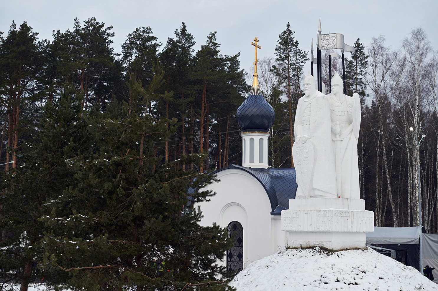 During the comprehensive reconstruction of the section from the 174th to the 194th kilometer of M-3 Ukraina highway, next to the new road, at the initiative of the Governor of the Kaluga Region Anatoly Artamonov and with the support and funding of Alexey Andreev, Director General of DSK AVTOBAN, JSC, a chapel was built in honor of the All-Merciful Savior.